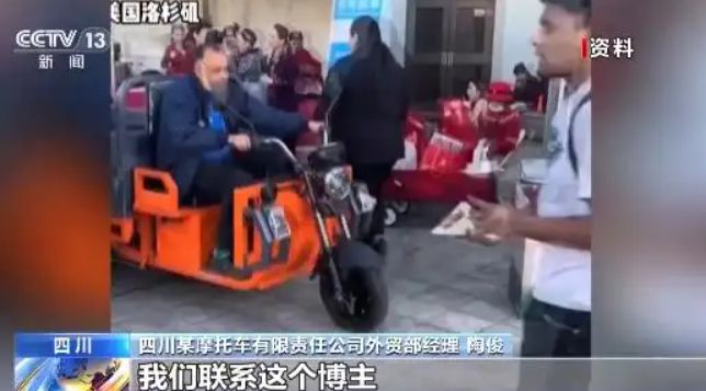 四川某摩托车有限责任公司外贸部经理 陶俊:当时有一个国外博主,他在我们这边买了一辆电动三轮车。他拿到美国去之后拍了一条视频,不知道为什么就火了。我们联系这个博主,给他发了几台车让他做测试,后面联系我们的国外客户越来越多。